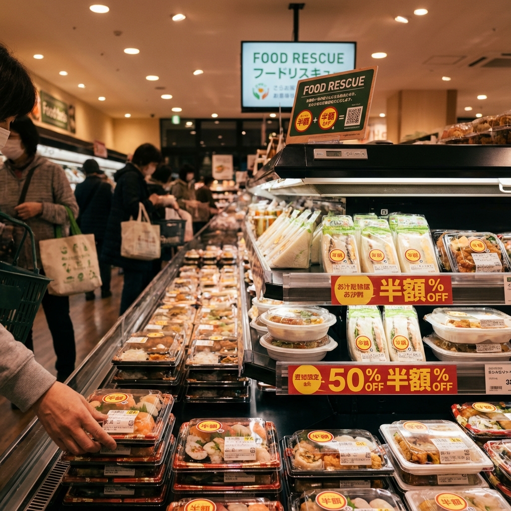 夕方、閉店前の割引品を求めて。必要なものを、必要なときに、無駄なく手に入れる。